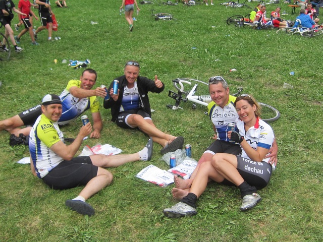 Wir alle haben das Ziel sturzfrei und glücklich erreicht! Stefan und Tom waren die Ersten und alle anderen wurden mit großem Jubel und einem alkoholfreien Bier begrüßt. Wir konnten die Ankunft im Ziel bei Sonnenschein genießen und waren als der Regen einsetzte bereits auf dem Weg nach Hause (auf dem Stilfserjoch hat es übrigens am 23.6 noch geschneit!). Mittlerweile haben wir auch die einseitige Verpflegung (Bananen, Balisto, Waffeln und nicht zu vergessen der trockene Toast mit einer Scheibe Käse) auch vergessen und einige bereiten sich schon wieder auf das nächste Event vor. Denn nach dem Marathon ist vor dem Marathon!