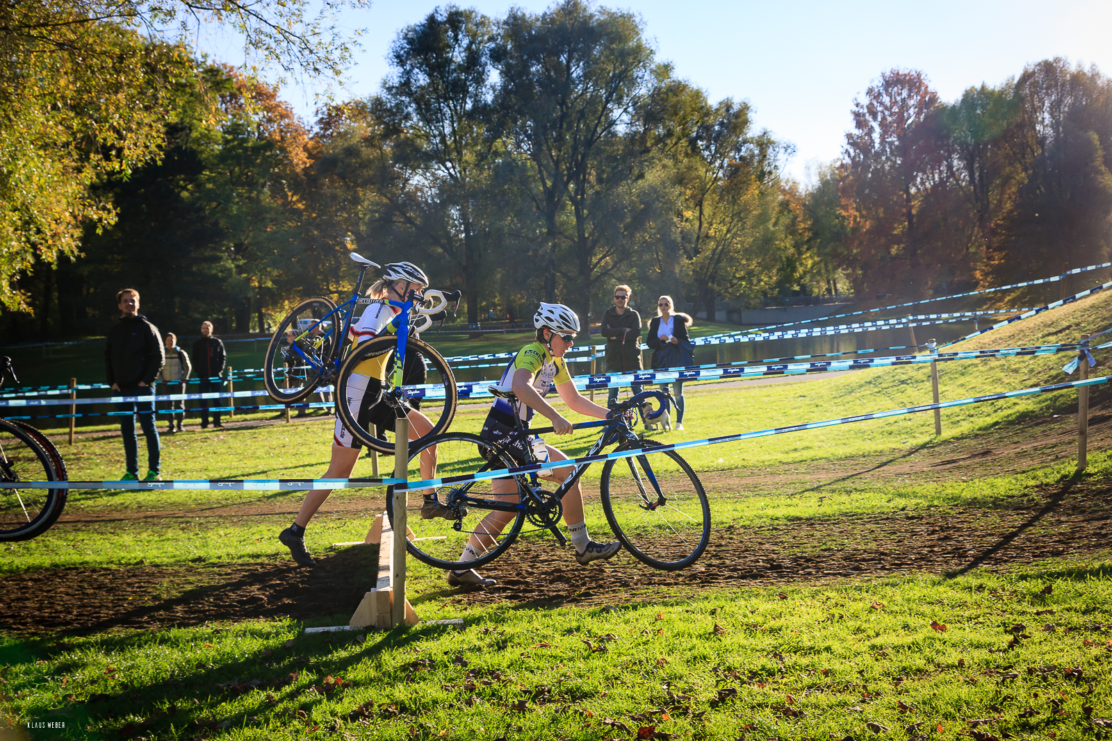 Um genau zu sein, fuhr ich dann sogar gleich zwei Crossrennen: am Samstag gab es einen Qualifikationslauf, in dem sich die besten 30 eines jeden Laufs für das große Finale am Sonntag qualifizieren konnten. Nachdem bei uns Frauen nur 20 Starterinnen gemeldet waren, war also der Qualifikationslauf eher ein gutes Wettkampftraining. Vorlauf, matschiger Steilhang